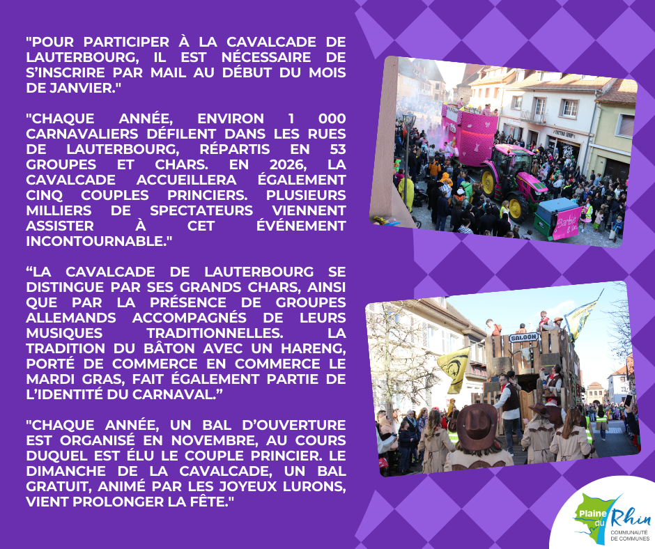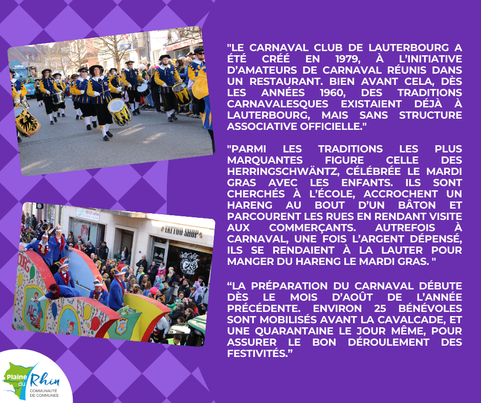 Dรฉcouvrez en dรฉtails les ๐ญ๐ซ๐š๐๐ข๐ญ๐ข๐จ๐ง๐ฌ ๐๐ฎ ๐œ๐š๐ซ๐ง๐š๐ฏ๐š๐ฅ qui ont lieu sur notre territoire. Aujourdโ€™hui, nous vous prรฉsentons le Carnaval Club de Lauterbourg et leur ๐œ๐š๐ฏ๐š๐ฅ๐œ๐š๐๐ž๐ŸŒ™โœจ.