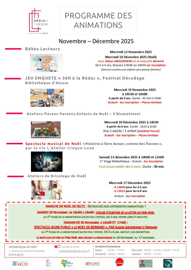 📚 MÉDIATHÈQUE DE SELTZ – ANIMATIONS NOV./DÉC. 2025