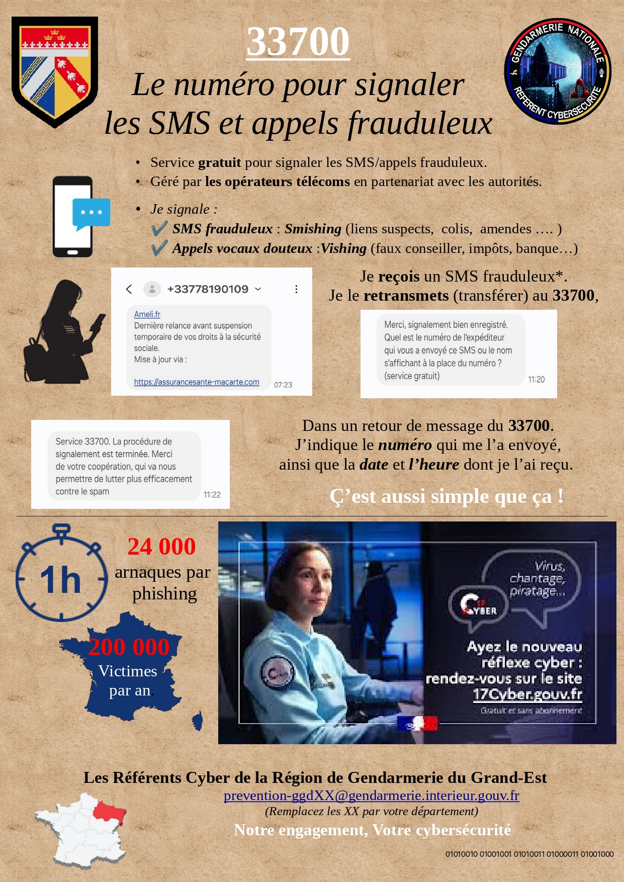 – Le numéro pour signaler les SMS et appels frauduleux « 33700 »