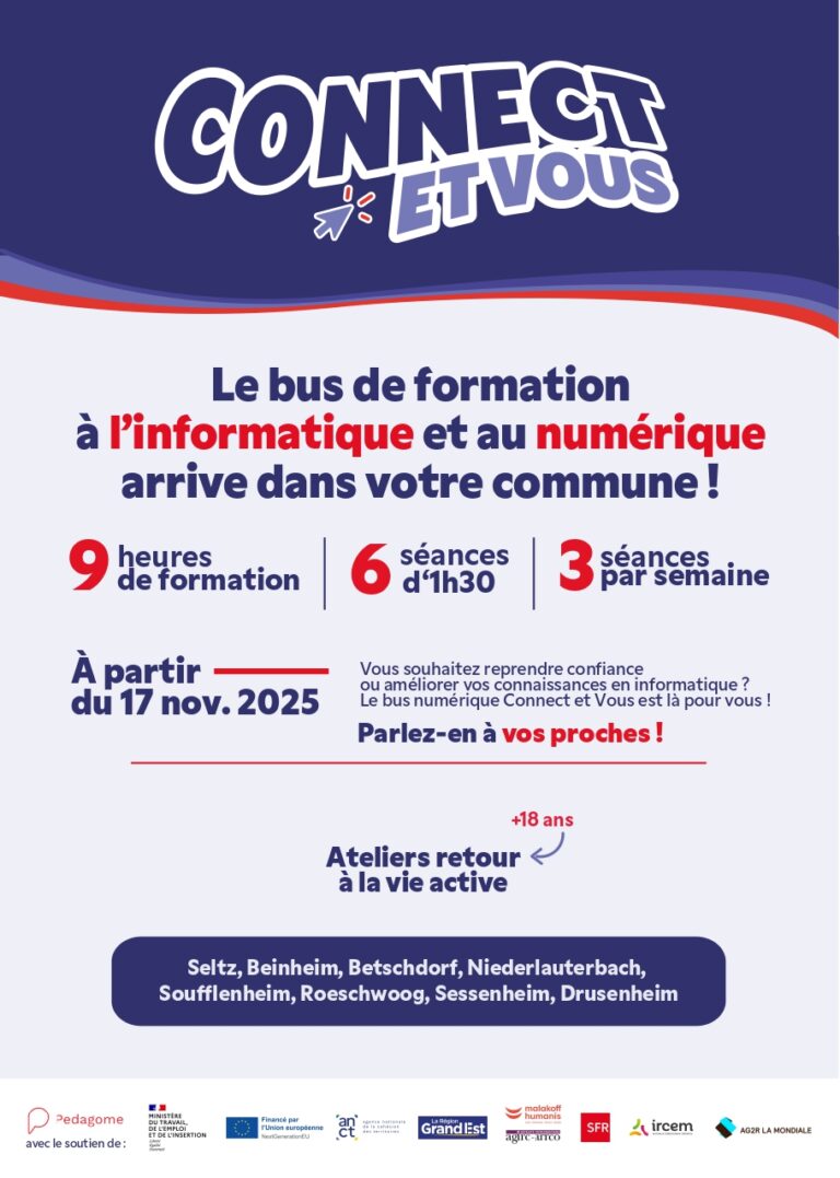 🖥️ 𝐏𝐋𝐀𝐍𝐍𝐈𝐍𝐆 𝐂𝐎𝐍𝐍𝐄𝐂𝐓 𝐄𝐓 𝐕𝐎𝐔𝐒 – 𝐍𝐨𝐯𝐞𝐦𝐛𝐫𝐞 & 𝐃𝐞́𝐜𝐞𝐦𝐛𝐫𝐞 𝟐𝟎𝟐𝟓 Le 𝐛𝐮𝐬 𝐝𝐞 𝐟𝐨𝐫𝐦𝐚𝐭𝐢𝐨𝐧 à l’informatique et au numérique 𝐚𝐫𝐫𝐢𝐯𝐞 𝐝𝐚𝐧𝐬 𝐯𝐨𝐭𝐫𝐞 𝐜𝐨𝐦𝐦𝐮𝐧𝐞 ! ✅ 9 heures de formation ✅ …