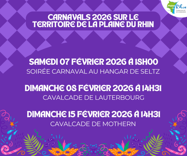 – 𝐒𝐚𝐦𝐞𝐝𝐢 𝟕 𝐟𝐞́𝐯𝐫𝐢𝐞𝐫 𝟐𝟎𝟐𝟔 : Soirée Carnaval à 18h00 au Hangar de Seltz animée par le duo PARADISO – 𝐃𝐢𝐦𝐚𝐧𝐜𝐡𝐞 𝟖 𝐟𝐞́𝐯𝐫𝐢𝐞𝐫 𝟐𝟎𝟐𝟔 : Cavalcade de Lauterbourg, suivie du …
