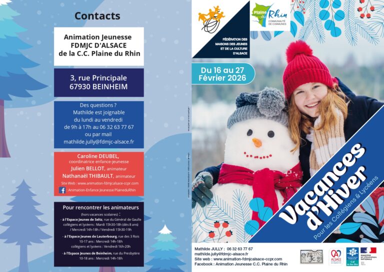 Retrouvez ci-dessous le programme des activités pour les vacances d’hiver, du 16 au 27 février 2026, à destination des collégiens et lycéens.
