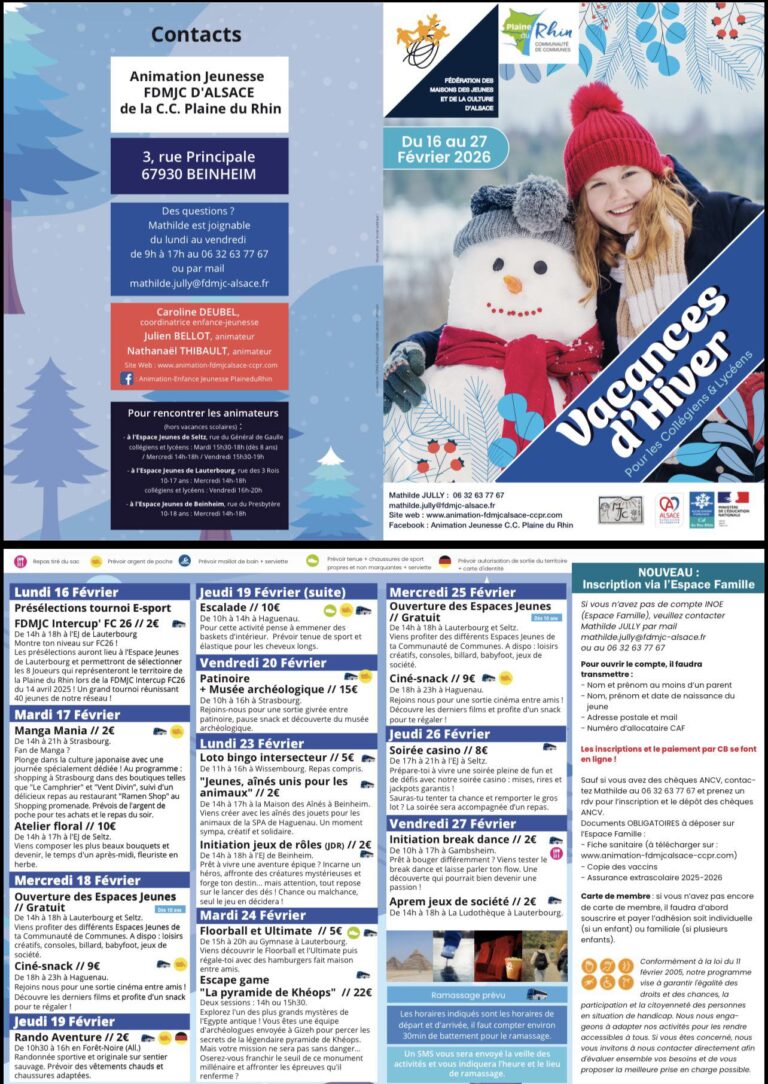 Collégiens et lycéens, préparez-vous à vivre des 𝐯𝐚𝐜𝐚𝐧𝐜𝐞𝐬 𝐢𝐧𝐨𝐮𝐛𝐥𝐢𝐚𝐛𝐥𝐞𝐬 ! Du 𝟏𝟔 𝐚𝐮 𝟐𝟕 𝐟𝐞́𝐯𝐫𝐢𝐞𝐫 𝟐𝟎𝟐𝟔,de 𝐧𝐨𝐦𝐛𝐫𝐞𝐮𝐬𝐞𝐬 𝐚𝐜𝐭𝐢𝐯𝐢𝐭𝐞́𝐬 vous attendent pour vous amuser, créer et partager de super moments ! …