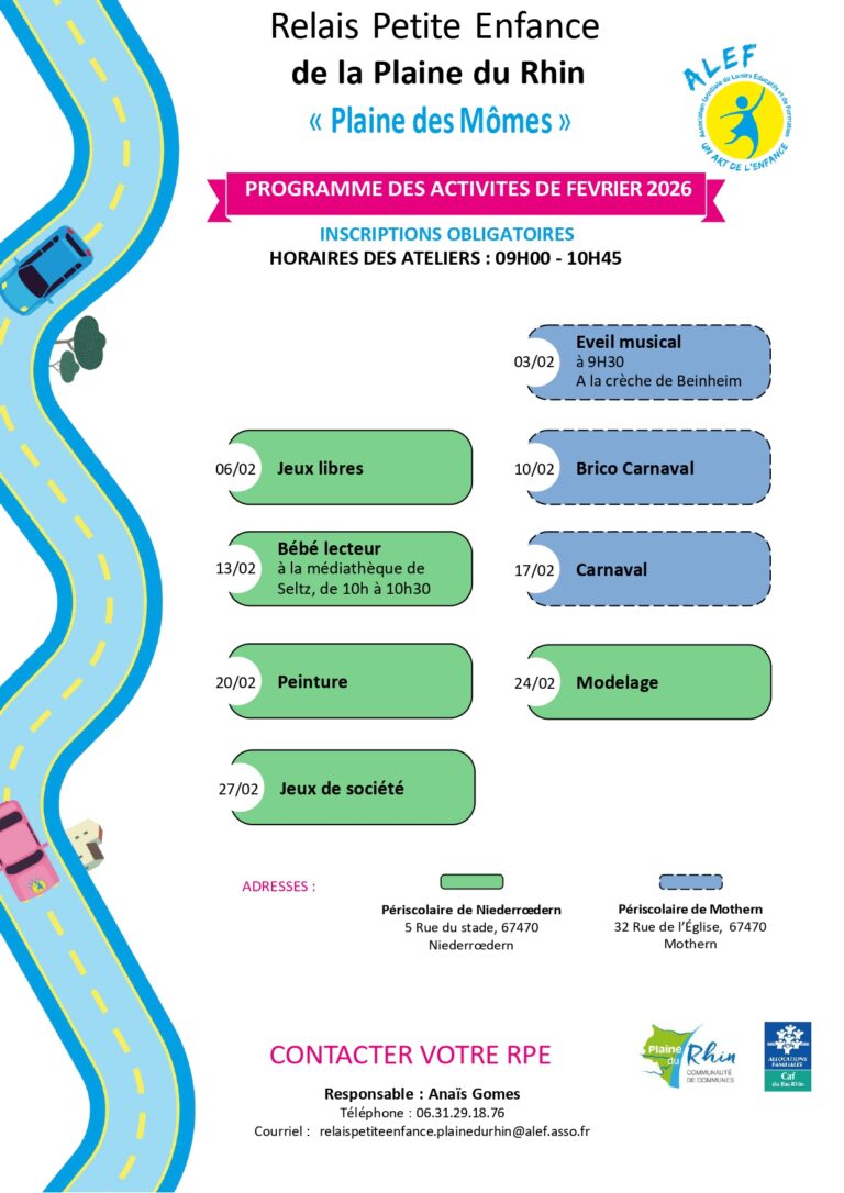Inscriptions obligatoires. Horaires des ateliers : 09h00 à 10h45 𝐏𝐫𝐨𝐠𝐫𝐚𝐦𝐦𝐞 𝐝𝐞𝐬 𝐚𝐭𝐞𝐥𝐢𝐞𝐫𝐬 : – 06 février : Jeux libres – 10 février : Brico Carnaval – 13 février : Bébé …